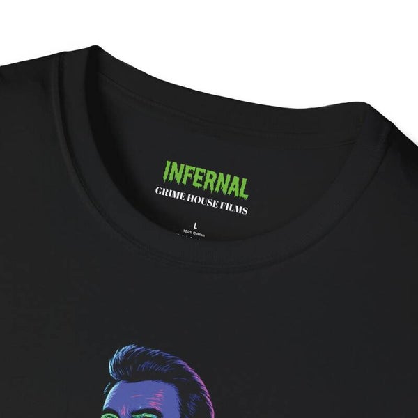 This shirt immortalizes Slade in blazing neon glory: silver mane, soulless shades, and the smirk of a man who once offered the devil a worse deal. It's glam. It's grimy. It's god-tier.